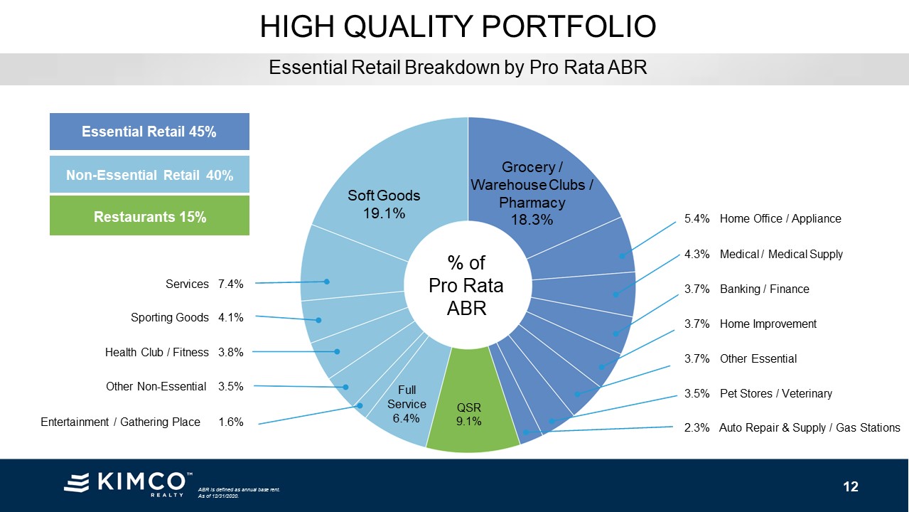 GLA is defined as gross leasable area. ABR is defined as annual base rent.As of 12/31/2020. HIGH QUALITY