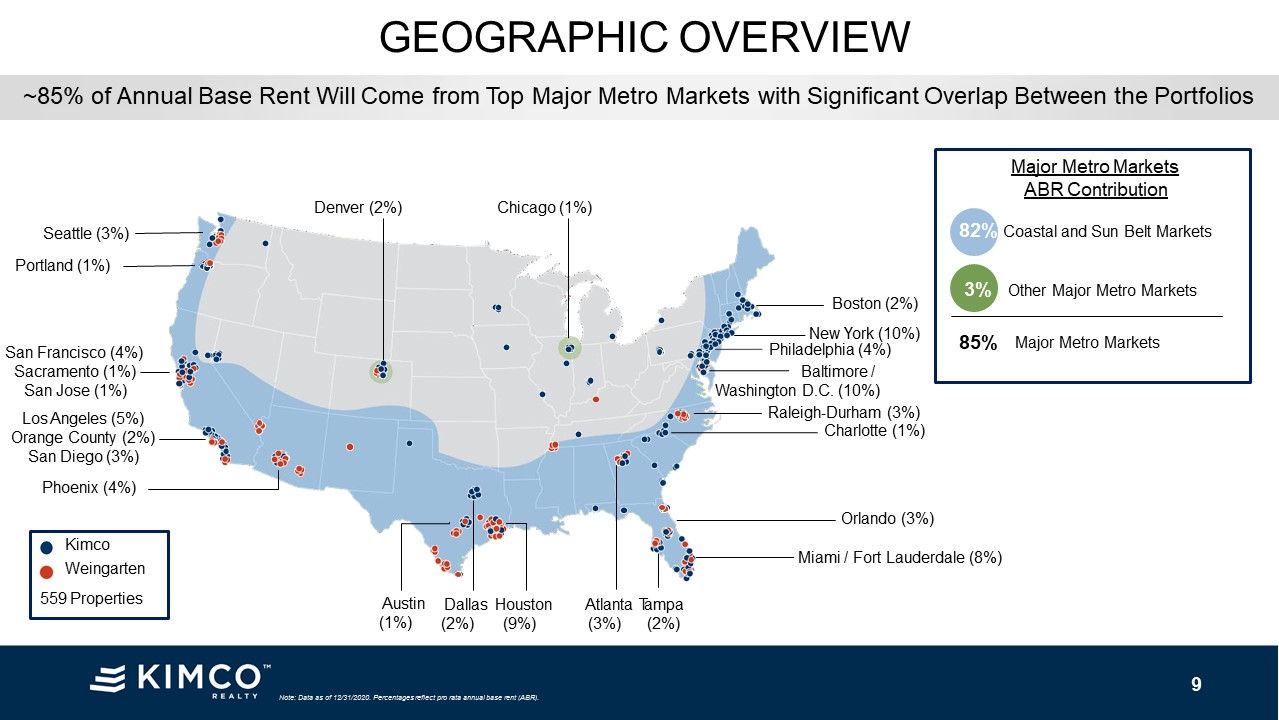 grocery-anchored centers$18.79 ABR per square foot Increases Kimco’s penetration in desirable Sun Belt markets, creating a well-balanced, national platform CREATES LEADING SHOPPING CENTER REIT WITH BENEFITS OF SCALE Pro forma total enterprise