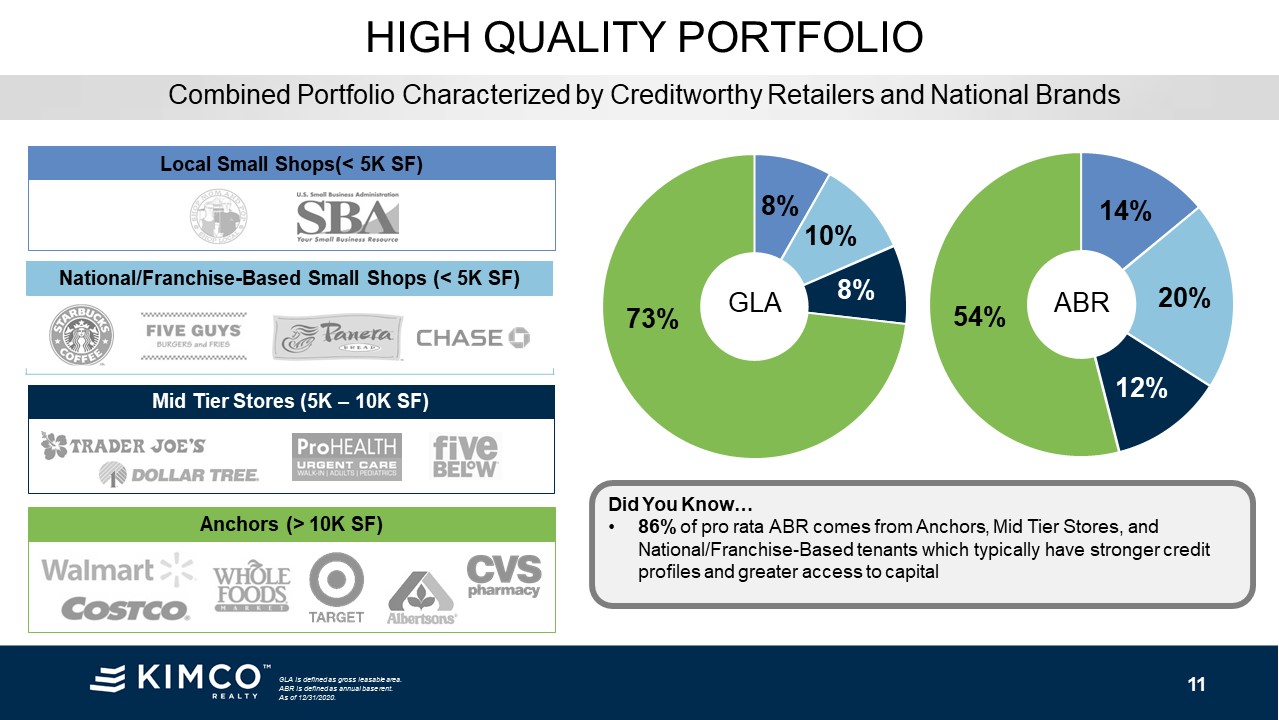 GLA is defined as gross leasable area. ABR is defined as annual base rent.As of 12/31/2020. HIGH QUALITY