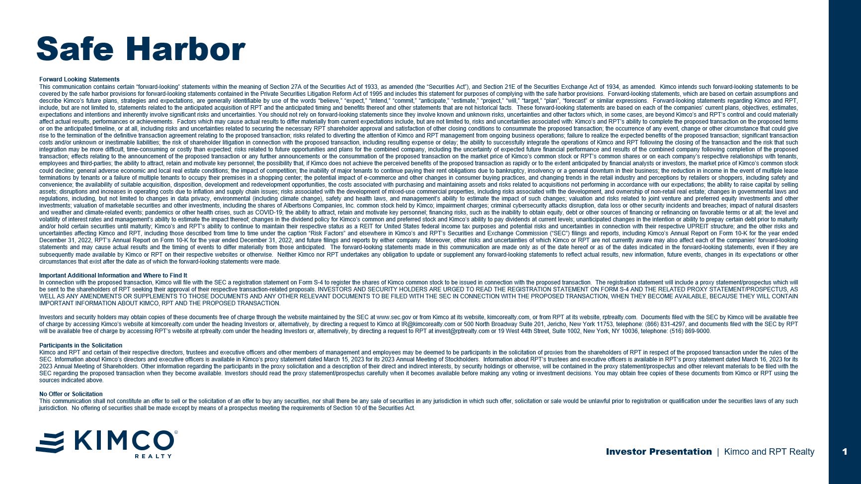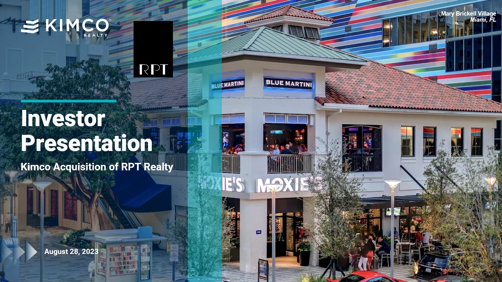 Investor Presentation Kimco Acquisition of RPT Realty August 28, 2023 Mary