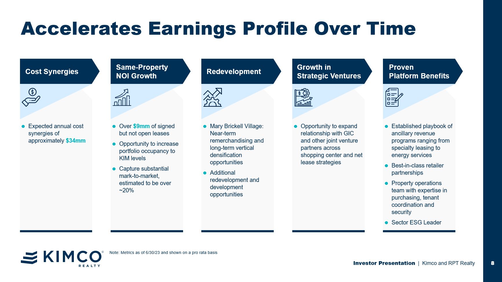 Accelerates Earnings Profile Over Time 8 Investor Presentation | Kimco and RPT