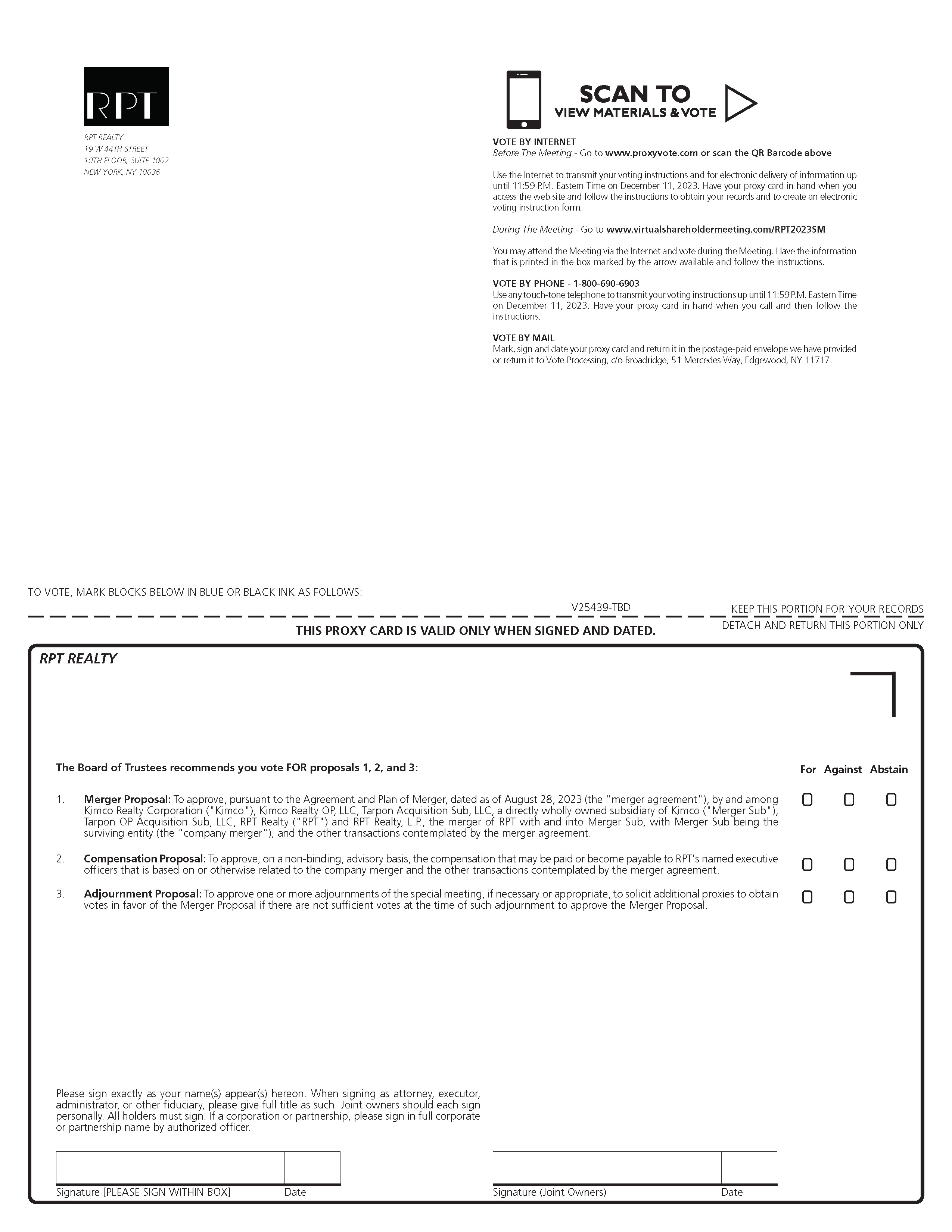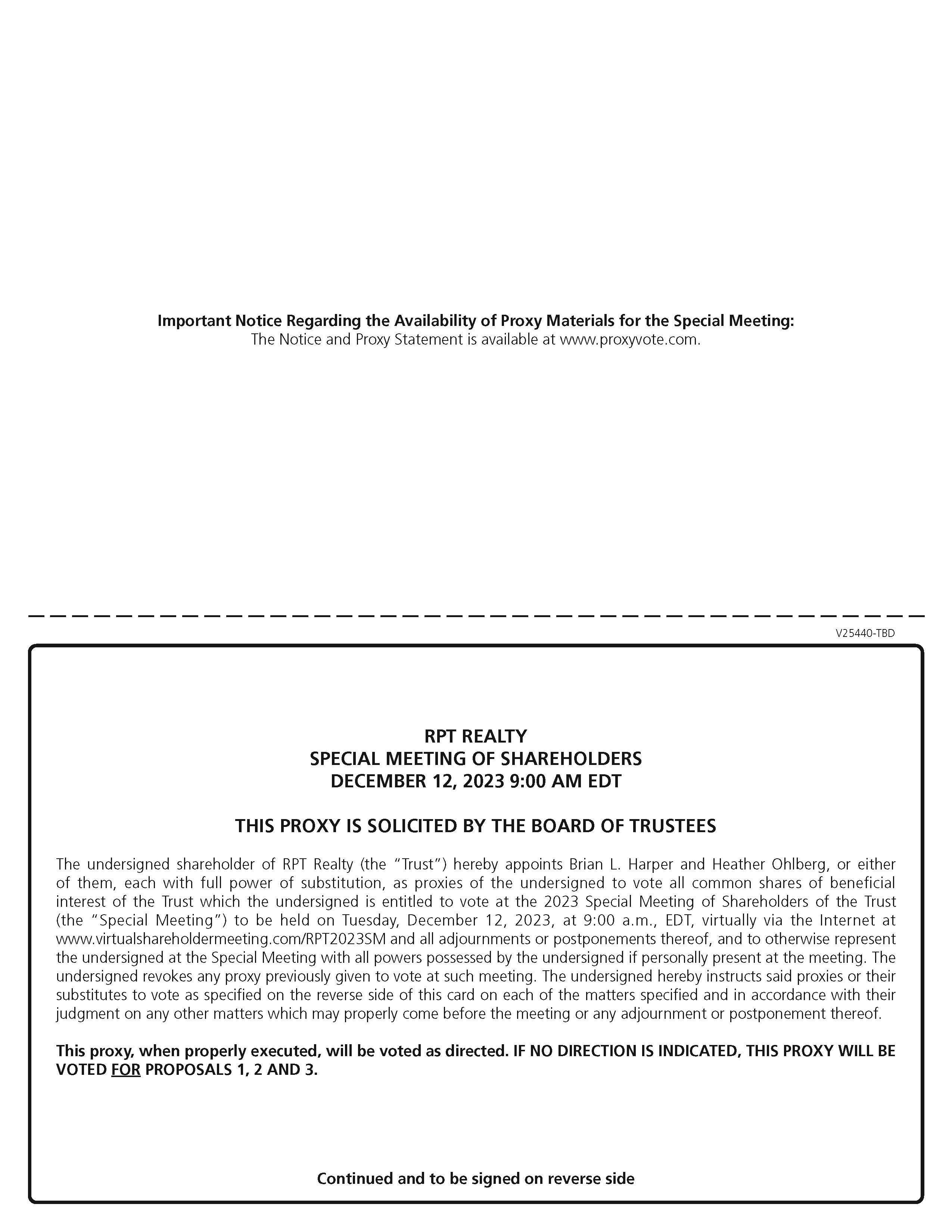 Special Meeting: The Notice and Proxy Statement is available at www.proxyvote.com. Continued and to be signed on reverse side RPT REALTY SPECIAL MEETING OF SHAREHOLDERS DECEMBER 12, 2023 9:00 AM EDT THIS PROXY IS SOLICITED BY THE BOARD OF