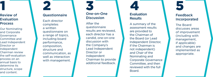 Incoming Independent Chairman The Independent Chairman will preside at all meetings of the Board of Directors, including executive sessions of the non-management directors, which typically occur after each Board meeting. The Independent Chairman will encourage and facilitate active participation of all directors and serve as a liaison between management and the other independent directors. The Independent Chairman will also have the authority to call meetings of the independent directors, monitor and coordinate with management and the Nominating and Corporate Governance Committee on Corporate Responsibility issues and developments, and approve meeting agendas and the information sent to the Board of Directors, including the quality, quantity and timeliness of such information. |