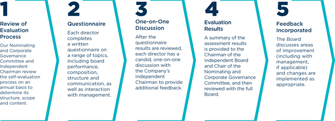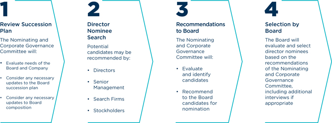 √ Separate Chairman and Chief Executive Officer (“CEO”) √ 6 of 9 directors nominees are independent; Audit, Executive Compensation and Nominating and Corporate Governance Committees are each entirely comprised of independent directors √ Require any search firm to include in its initial list of board candidates, qualified candidates who reflect a variety of backgrounds, skillsets and perspectives √ Executive sessions of non-management directors are held at all Board and committee meetings √ Annual strategic review by the Board with management √ No familial relationships among director nominees √ Limits on other board service to prevent “overboarding” √ Formal “Clawback” Policy