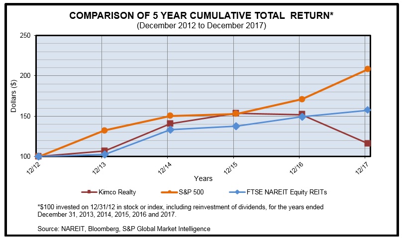 The Company began operations through its predecessor, The Kimco Corporation, which was organized in 1966 upon the contribution of several shopping center properties owned by its principal stockholders. In 1973, these principals formed the Company as a Delaware corporation, and, in 1985, the operations of The Kimco Corporation were merged into the Company. The Company completed its initial public stock offering (the “IPO”) in November 1991, and, commencing with its taxable year which began January 1, 1992, elected to qualify as a REIT in accordance with Sections 856 through 860 of the Internal Revenue Code of 1986, as amended (the “Code”). If, as the Company believes, it is organized and operates in such a manner so as to qualify and remain qualified as a REIT under the Code, the Company generally will not be subject to federal income tax, provided that distributions to its stockholders equal at least the amount of its REIT taxable income, as defined under the Code. The Company maintains certain subsidiaries which made joint elections with the Company to be treated as taxable REIT subsidiaries (“TRS”), which permit the Company to engage in certain business activities which the REIT may not conduct directly. A TRS is subject to federal and state income taxes on its income, and the Company includes a provision for taxes in its consolidated financial statements. In 1994, the Company reorganized as a Maryland corporation. In March 2006, the Company was added to the S & P 500 Index, an index containing the stock of 500 Large Cap companies, most of which are U.S. corporations. The Company's common stock, Class I Depositary Shares, Class J Depositary Shares, Class K Depositary Shares, Class L Depositary Shares and Class M Depositary Shares are traded on the New York Stock Exchange (“NYSE”) under the trading symbols “KIM”, “KIMprI”, “KIMprJ”, “KIMprK”, “KIMprL”, and “KIMprM”, respectively.